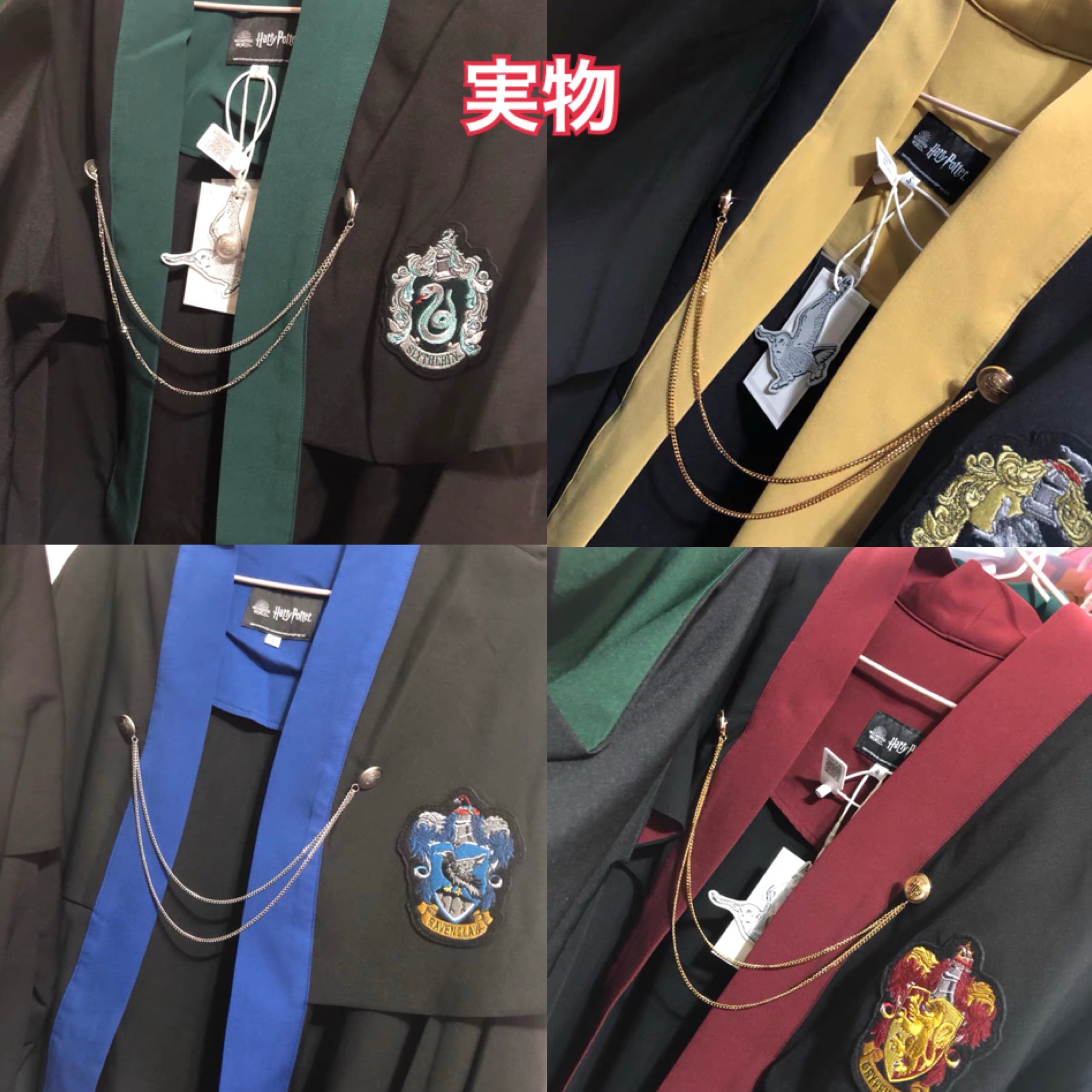 厚くて透けない生地に、ホグワーツ各寮の寮章が繊細な刺繍が施されたケープ型のローブ。ローブはフードが無く、チェーンで留めるクラシカルで可愛らしいデザインとなっております。公式ライセンス商品と希少性を兼ね備えたローブケープを身にまとい、魔法界へと誘われるひとときをお楽しみください。